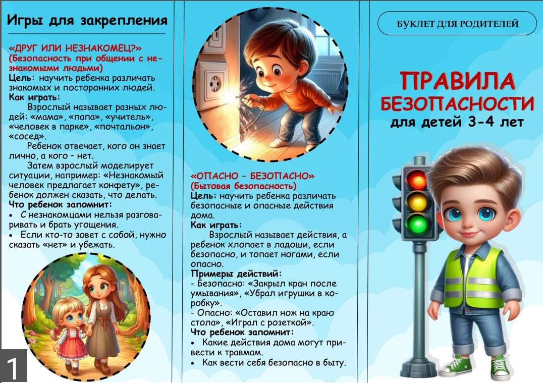 Ата-аналарға арналған Буклет: "3-4 жастағы балаларға арналған қауіпсіздік ережелері" "Күншуақ" тобы / Буклет для родителей: "Правила безопасности для детей 3-4 года" группа "Солнышко"