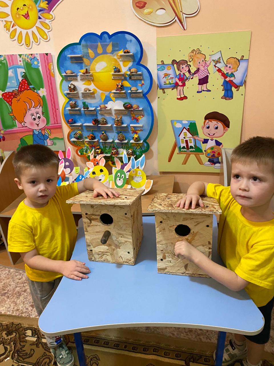 "Қамқор" жобасы аясында құстарға арналған Қоректендіргіштер мен құс үйлерін құру ата-аналар мен балалардың бірлескен жұмысы / В рамках проекта «Қамқор» создание кормушек и скворечников для птиц совместная работа родителей и детей группа "Солнышко"