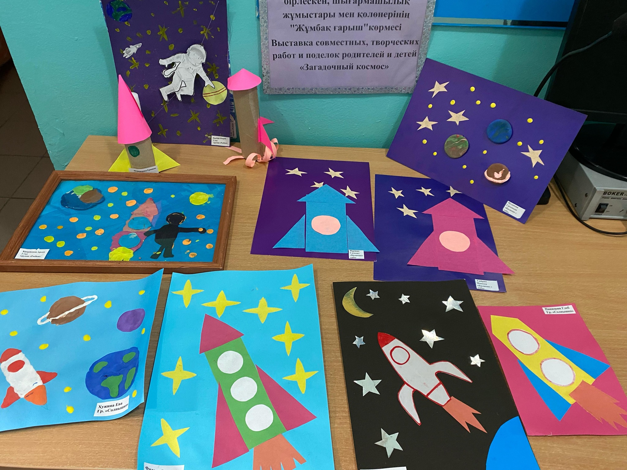 Ата-аналар мен балалардың бірлескен, шығармашылық жұмыстары мен қолөнерінің "жұмбақ ғарыш"көрмесі / Выставка совместных, творческих работ и поделок родителей и детей «Загадочный космос»