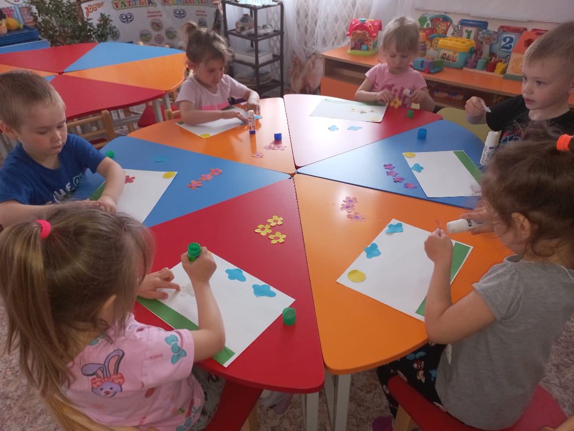 Шығармашылық іс -әрекет: "Сәлем жаз "(жапсыру) Творческая деятельность: "Здравствуй лето" (аппликация)