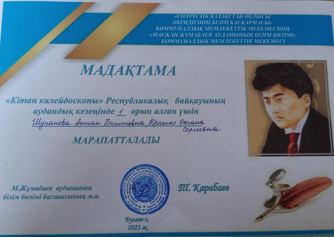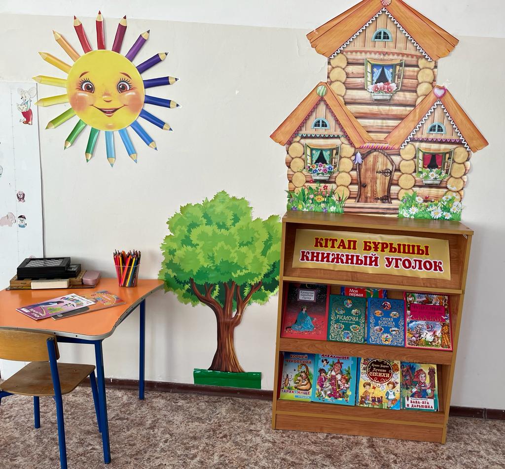 "Үздік кітап бұрышы" республикалық конкурсының аудандық кезеңінде 1 орын "Күншуақ"тобы тәрбиешілер: Шупанова А. Б., Юрченко О. С. / 1 место на районном этапе Республиканского конкурса "Лучший книжный уголок" группа "Солнышко" воспитатели: Шупанова А.Б., Ю