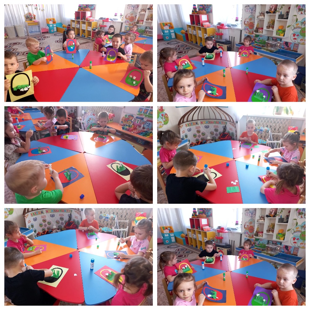Жапсыру бойынша ұйымдастырылған іс- әрекет "Ақшақар" / Организованная деятельность по аппликации "Подснежник "