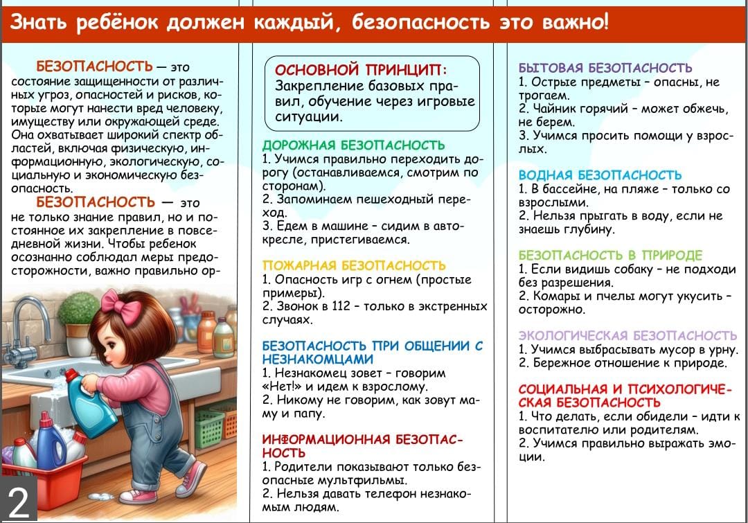 Ата-аналарға арналған Буклет: "3-4 жастағы балаларға арналған қауіпсіздік ережелері" "Күншуақ" тобы / Буклет для родителей: "Правила безопасности для детей 3-4 года" группа "Солнышко"