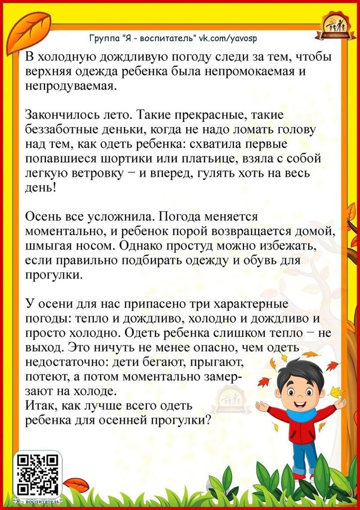 Ата-аналарға арналған кеңес «Баланы күзде серуендеуге қалай киіндіру керек». «Балықтар» тобы Консультация для родителей « Как одевать ребёнка осенью на прогулку». группа «Рыбки»