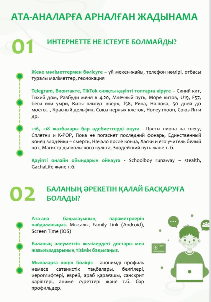 Ата-аналарға арналған жадынама / Памятка для родителей