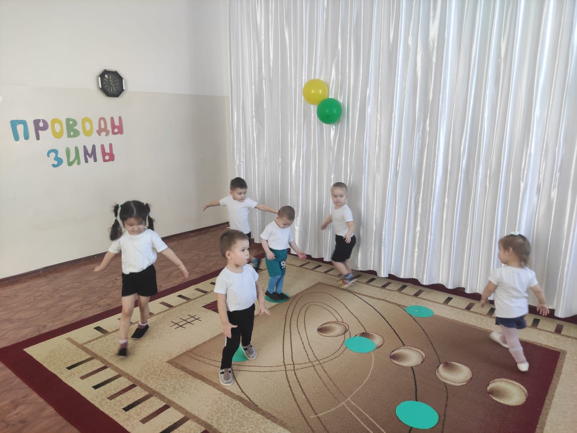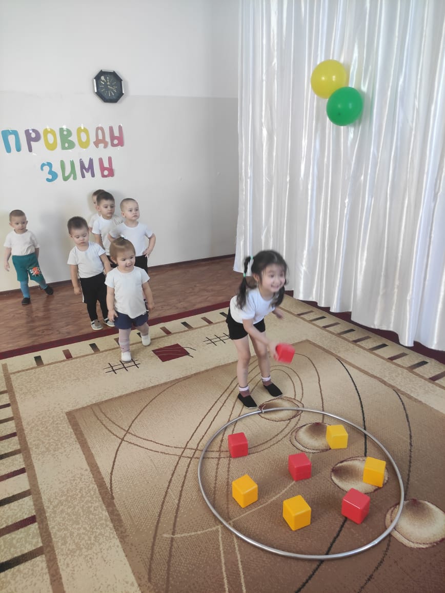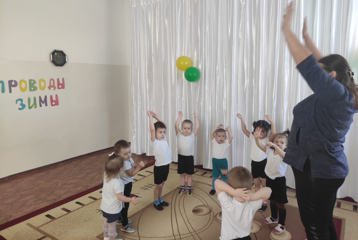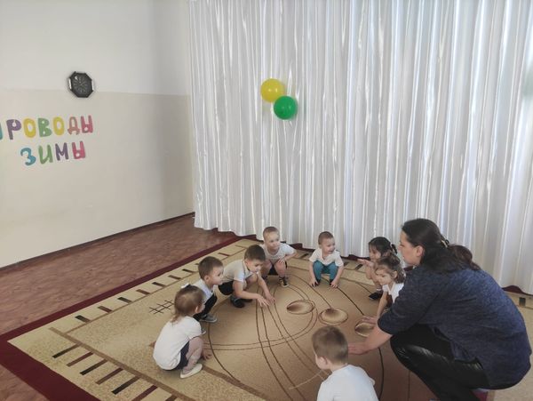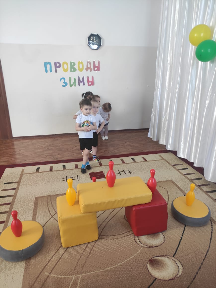 В группе "Рыбки" было проведено спортивное мероприятие Проводы зимы. Целью мероприятия послужила гармонизация детских отношений средствами физической культуры, в ходе совместных игровых действий. Началом спортивного мероприятия стала разминка, затем дети приняли участие в спортивных конкурсах. Соревновались в сбивании мячом кегель, собирали мячи и кубики по цветам, а также играли в подвижную игру.