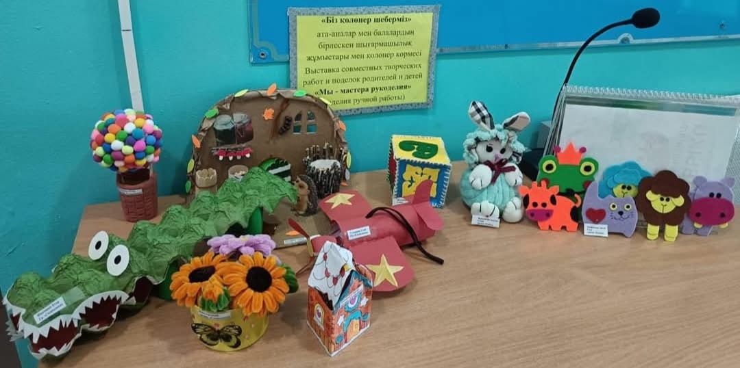 "Біз қолөнер шеберіміз"ата - аналар мен балалардың бірлескен шығармашылық жұмыстары мен қолөнер көрмесі / Выставка совместных творческих работ и поделок родителей и детей "Мы мастера - рукоделия"