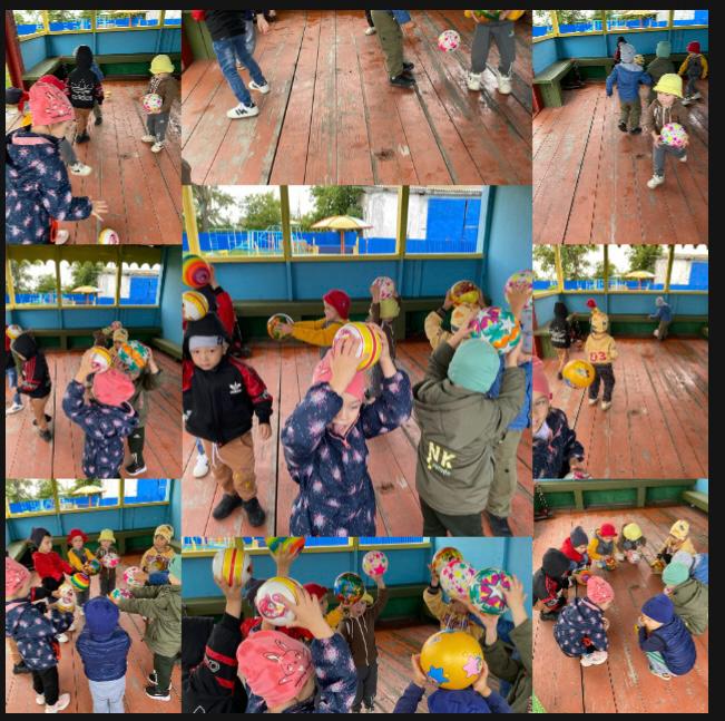 "Доппен көңілдер" қимыл-қозғалыс ойын Подвижная игра "Забавы с мячом" группа "Солнышко"