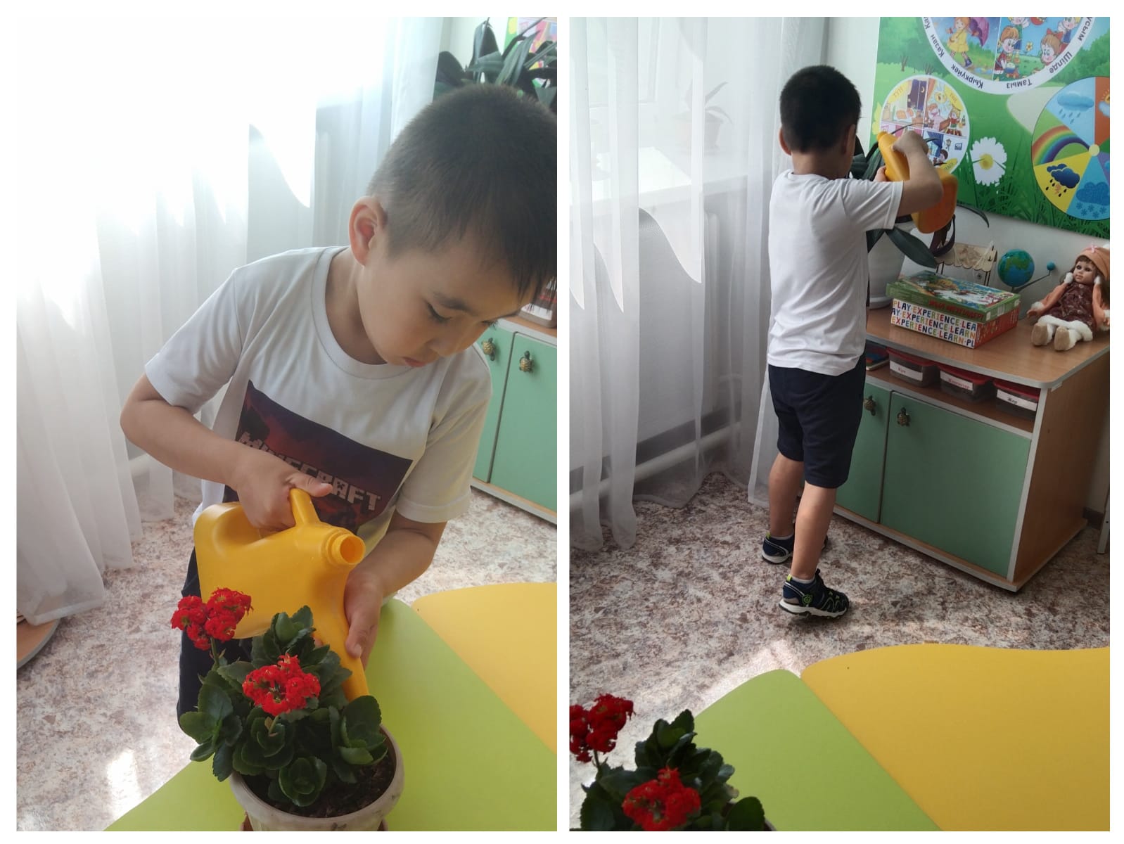 Еңбек қызметі (гүлдерді суару) / Трудовая деятельность (полив цветов)