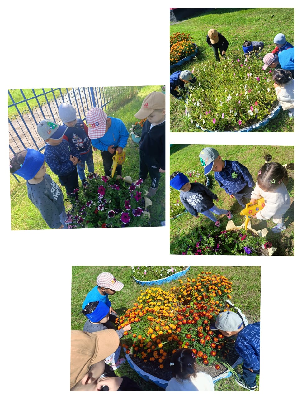 Гүлзардағы гүлдерді бақылау. "Күншуақ" тобы / Наблюдение за цветами на клумбе. группа "Солнышко"