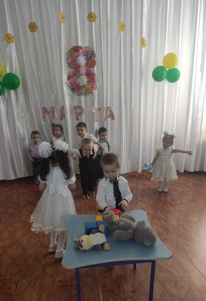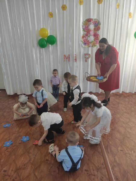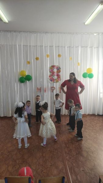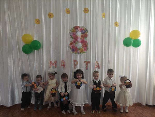 В преддверии празднования замечательного весеннего праздника 8 марта в группе "Рыбки" был организован утренник. Целью которого было познакомить детей с праздником 8 марта, а также создание эмоционально положительного настроя у детей и взрослых в процессе совместной деятельности. Дети исполняли песни посвящённые любимым мамам и бабушкам, исполнили танец. Приняли участие в играх- "Цветы для мамы" и "Хозяюшка". На протяжении всего утренника дети были в эмоционально положительном настрое и в завершении утренника подготовили подарочки для своих мам и бабушек- поздравительные открытки.