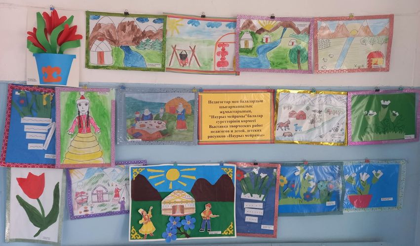 Педагогтар мен балалардың шығармашылық жұмыстарының, "Наурыз мейрамы"балалар суреттерінің көрмесі