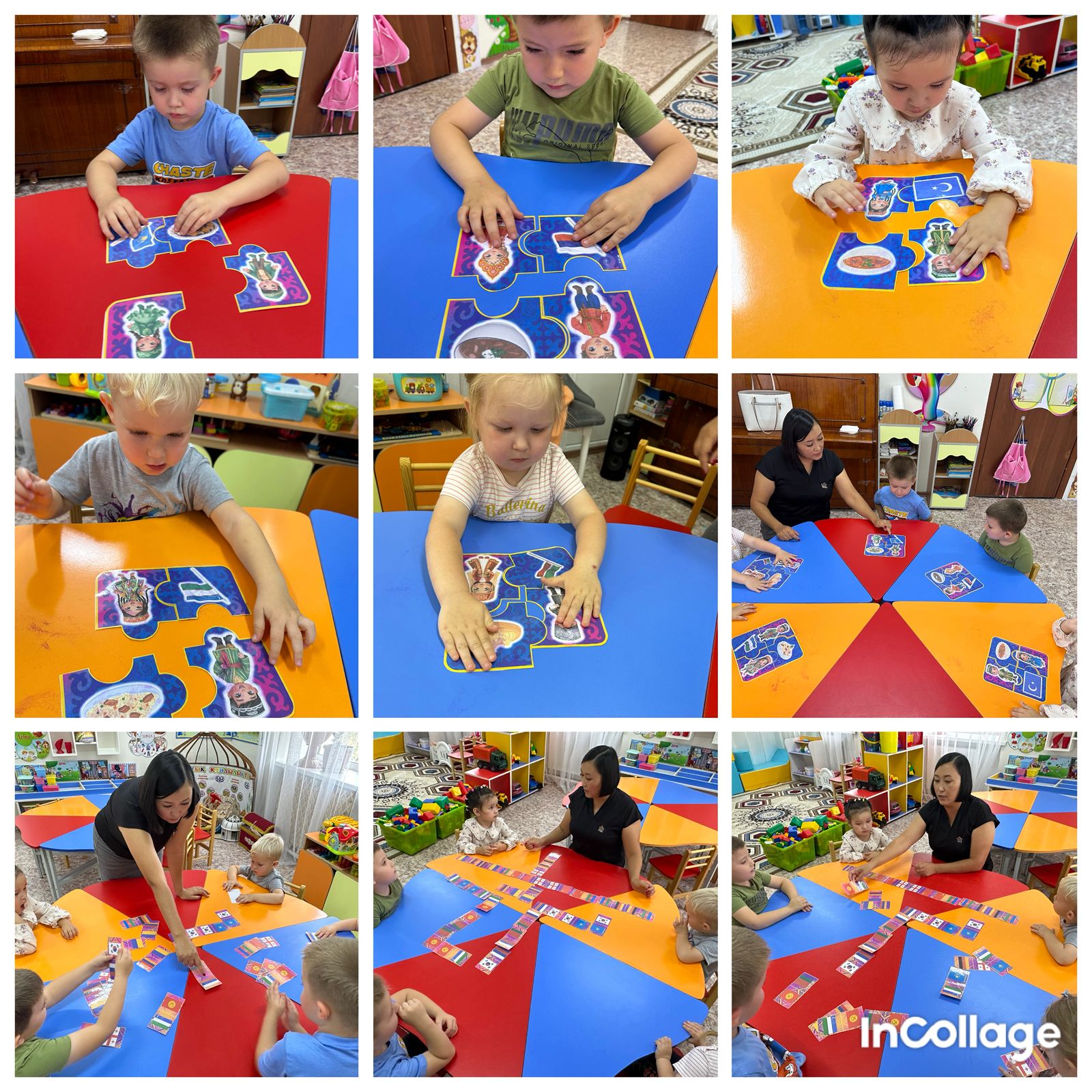 Қазақстан халықтары тілдері апталығының "Тілге бойлау" жобасы аясында, қазақ тілі оқытушысы Шупанова С.Ж "Күншуақ" тобында дидактикалық ойындар өткізді. Балалар әртүрлі халықтардың мәдениеттерімен танысып, "басқатырғыштар" мен "Домино" ойнағанды ұнатты / В рамках проекта "Тілге бойлау" недели языков народов Казахстана преподаватель казахского языка Шупанова С.Ж. в группе «Солнышко» провела дидактические игры. Дети с удовольствием играли в «Пазл» и «Домино», знакомясь с культурами разных народов.
