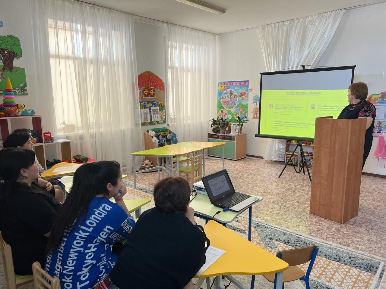 Педагогтарды аттестациялау ережесінің жобасы бойынша түсіндіру жұмыстары аясында педагогикалық ұжыммен кездесу өткізілді. Кездесу барысында енгізілген өзгерістердің негізгі аспектілері түсіндірілді. В рамках разъяснительной работы по проекту Правил аттестации педагогов было проведено совещание с педагогическим коллективом. В ходе совещания были разъяснены основные аспекты изменений.