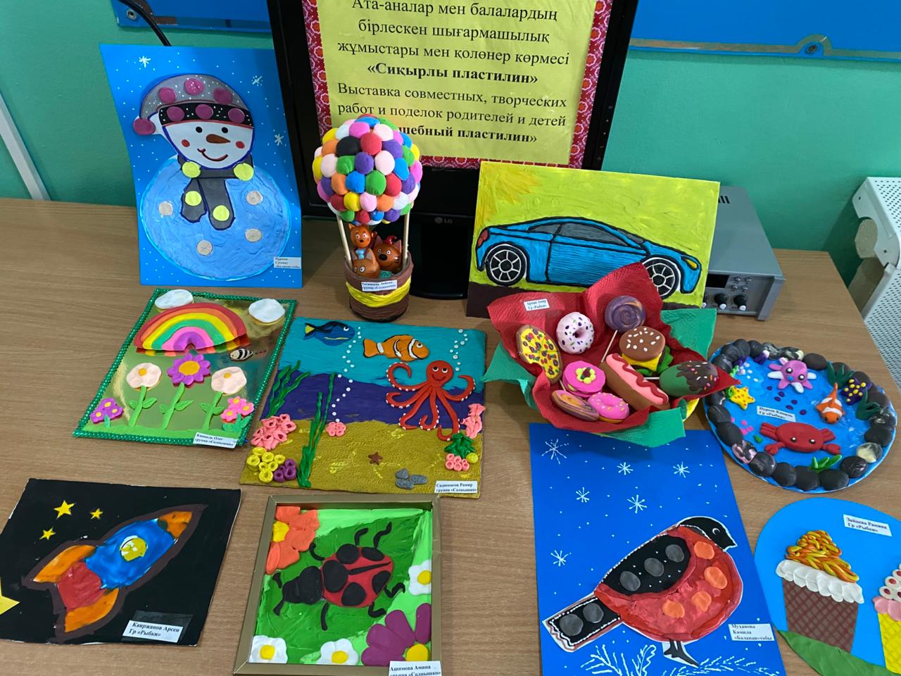Ата-аналар мен балалардың бірлескен шығармашылық жұмыстары мен қолөнер көрмесі, «Сиқырлы пластилин» / Выставка совместных, творческих работ и поделок родителей и детей "Волшебный пластилин"