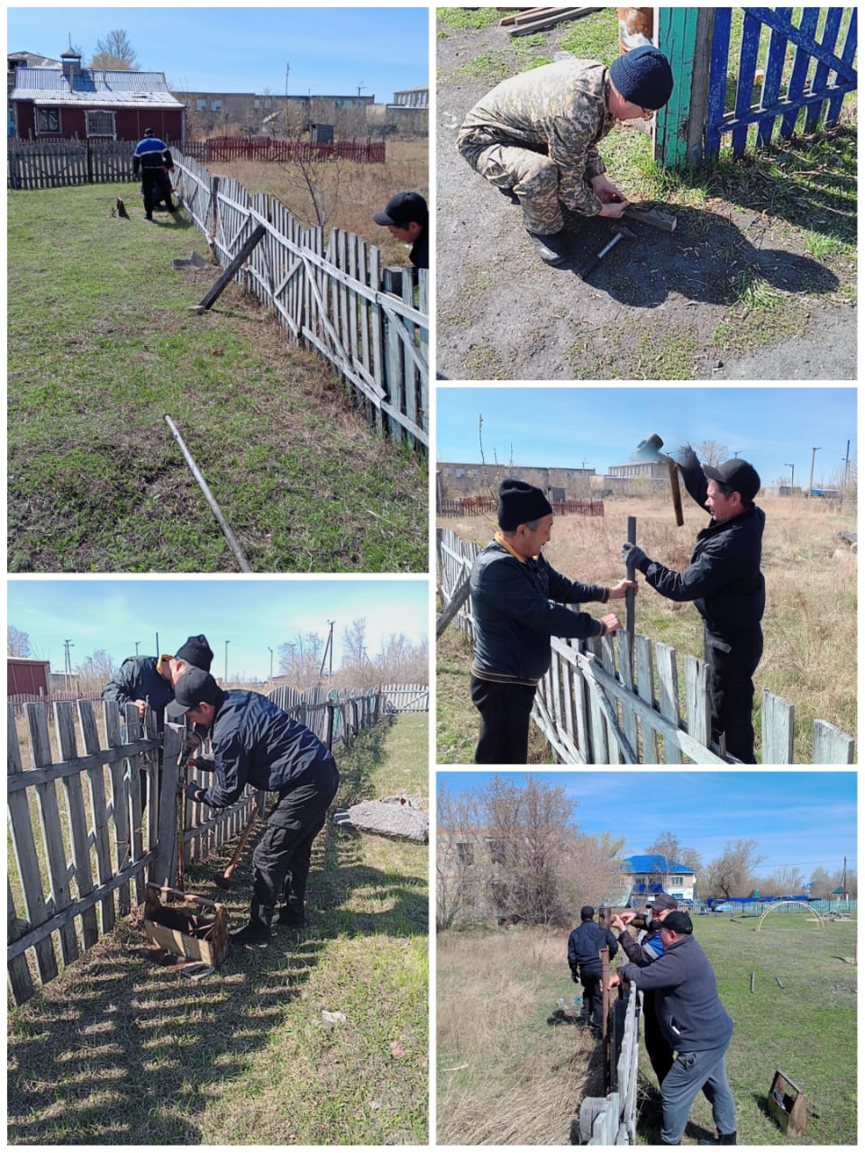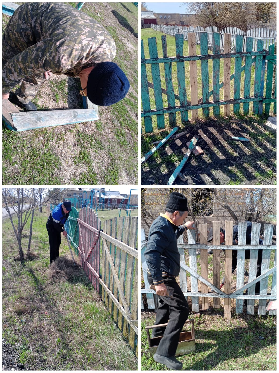 Бөбекжай - бақша жұмысшыларының күшімен ауылдық округінің ойын алаңының қоршауы жөнделді / Силами работников Ясли - сада был проведён ремонт ограждения детской площадки сельского округа.