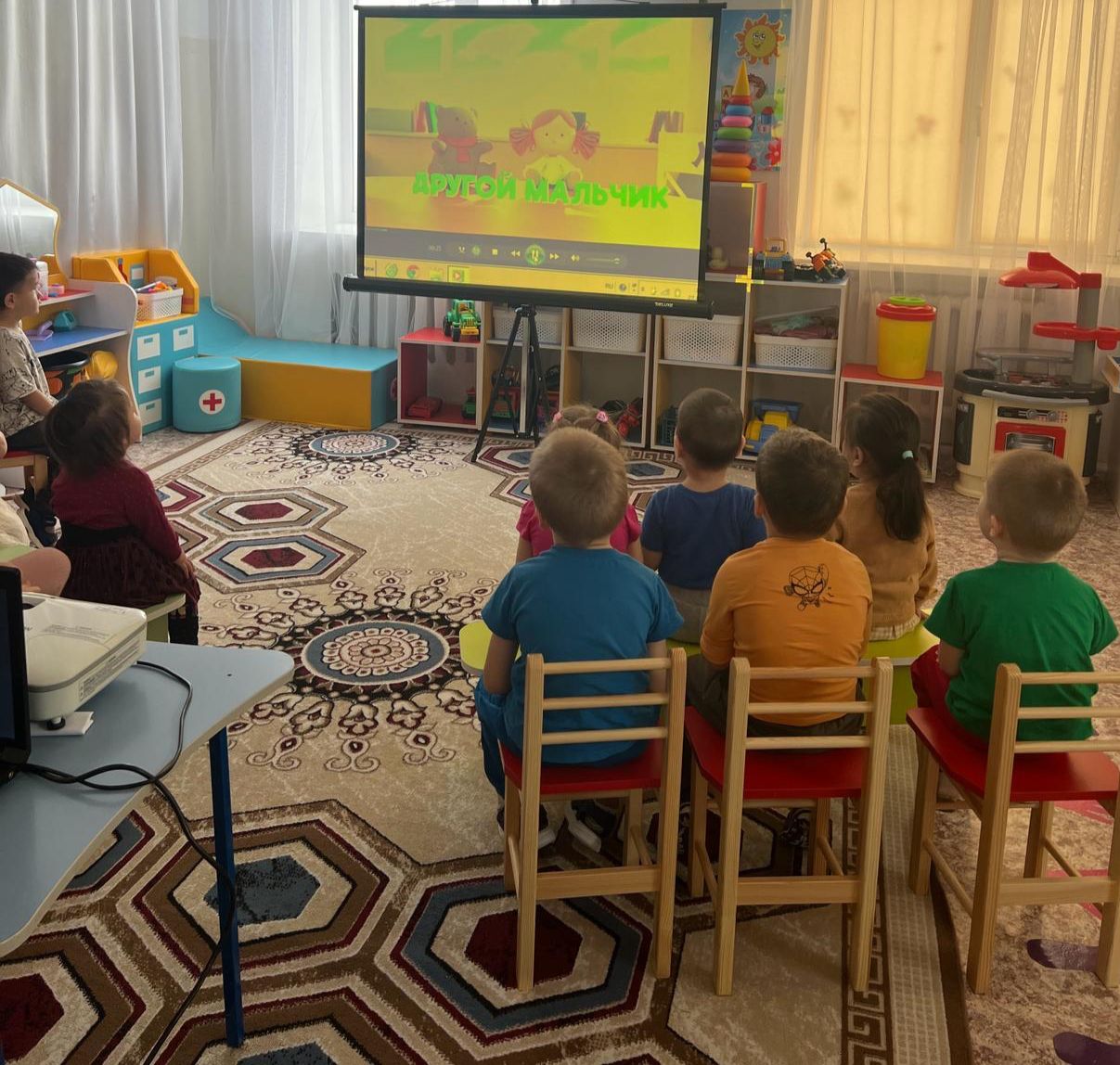 Біздің балабақшада балалар қорқытудың алдын алу бойынша "басқа бала" атты нұсқаулық мультфильмді тамашалады. Мультфильмді көрудің мақсаты: балаларға құрдастарымен жақсы қарым-қатынас жасауға көмектесу, балалар ұжымдарындағы қорқыту мәселесімен бірге күресу және қиын жағдайларда балаларды қолдауды үйрену. Балалар мультфильмді қызығушылықпен көріп, талқылады. Педагог-психолог А. С. Байгабулова балалармен айналасындағыларға төзімділік туралы әңгімелесті , проблемаларды, оның ішінде балалар ұжымындағы ұрыс-керіссіз, жанжалсыз мәселелерді шешу қажеттігі туралы хабардар етті. В нашем ясли - саду ребята посмотрели поучительный мультфильм: «Другой мальчик» по профилактике буллинга. Цель просмотра мультфильма: помочь ребятам лучше общаться со сверстниками, вместе бороться с проблемой буллинга в детских коллективах и учиться поддерживать детей в трудных ситуациях. Ребята с интересом посмотрели и обсудили мультфильм. Педагог- психолог Байгабулова А.С. поговорила с детьми о толерантности к окружающим , проинформировала о необходимости решения проблем без драк и ссор в детском коллективе.